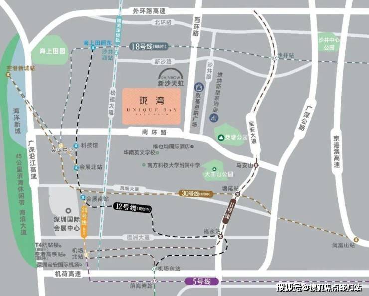 陆:周边有“一横三纵+三大高速”的交通路网,从项目出发经南环路接沿江高速约15分钟到前海,约20分钟到南山。另有宝安大道、107国道、京港澳高速,外环高速多条线路,约7分钟直达国际会展城及海洋新城