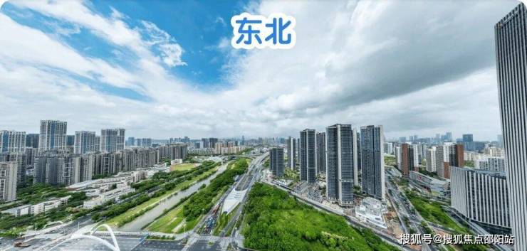 东北:楼下近距是公园绿地和双界河东段景观,远处看新安老城方向,整体远景城市景观为主。