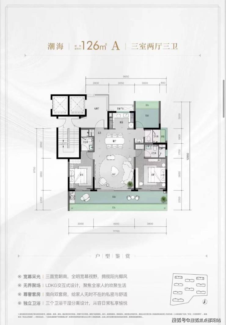 高层主力户型:80-150㎡(两居至四居),南向瞰海,部分户型带270°观景阳台