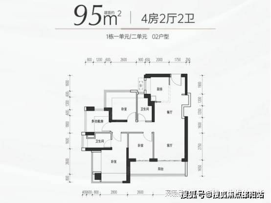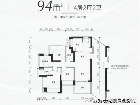 94-95㎡四房两卫:折后总价 327 万起,单价约 3.47 万元 /㎡。