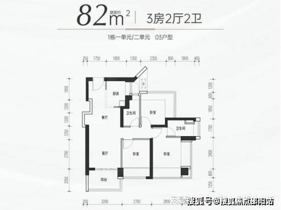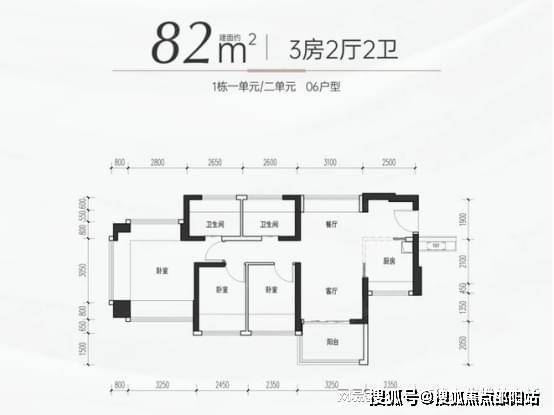 82㎡三房两卫:折后总价 280 万起,单价约 3.59 万元 /㎡。