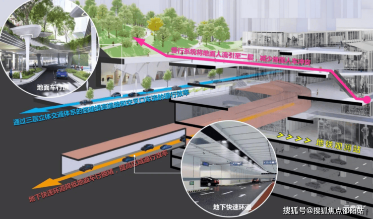 另外,项目独创了3.6KM全通达的空中连廊,不用经过任何马路就能直达商场、地铁站、公园、学校。