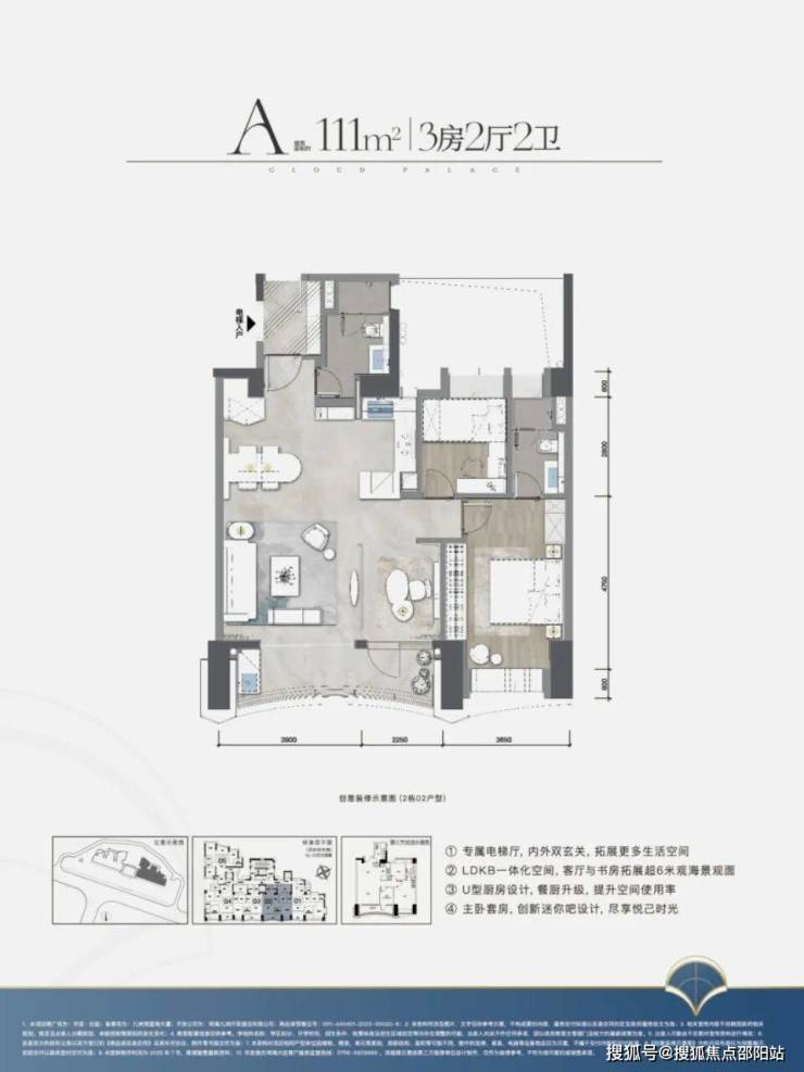 ·产 品:建筑面积约111-140㎡三至四房、270度环幕山海景观