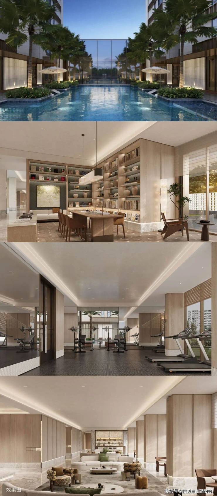 一楼配套逾1000㎡高端会所,涵盖有氧健身、无氧健身、瑜伽跳操室、泳池、咖啡吧、书吧、会客厅等功能,私享隐奢社交主场。