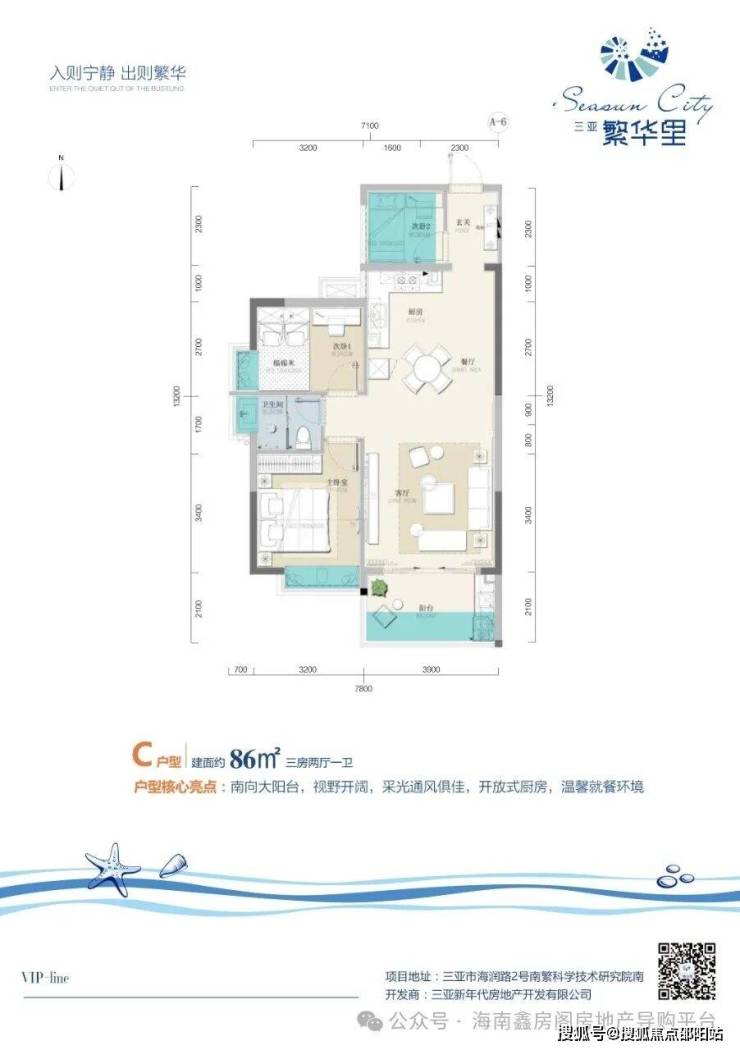【商业配套】:解放路商圈与红树林度假世界商圈两大核心区,商业、酒店、影院林立,高规格醇熟配套一应俱全;紧邻三亚动车站的夏日百货广场、万悦新天地商业广场也即将开业,27万方的“爱上山”商业小镇,2万平米槟榔河风情商业街都在项目周边。