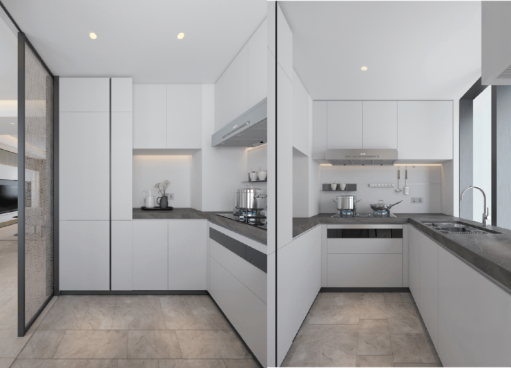 厨房配备嵌入式专用空调,同时配备西门子抽油烟机、燃气灶和嵌入式洗碗机