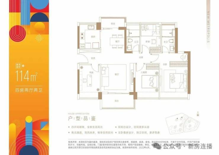 114平:4房2厅2卫,南北通透,使用率77.65%(不包赠送)