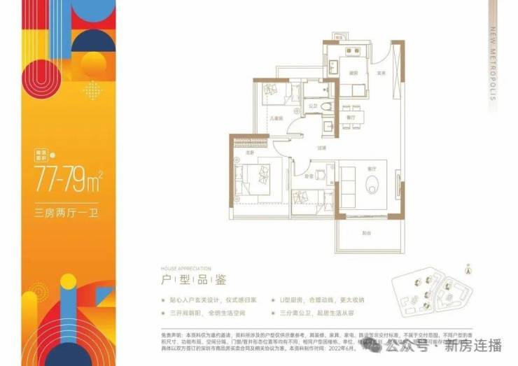 77-79平:3房2厅1卫,西北/西南/东南,使用率77.65%(不包赠送)