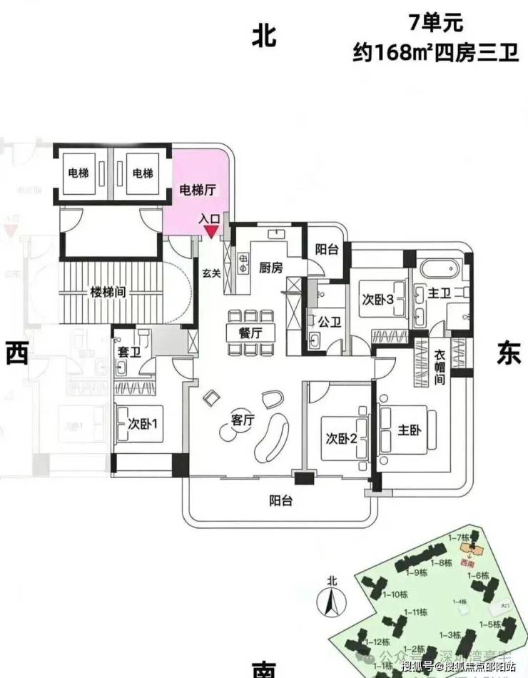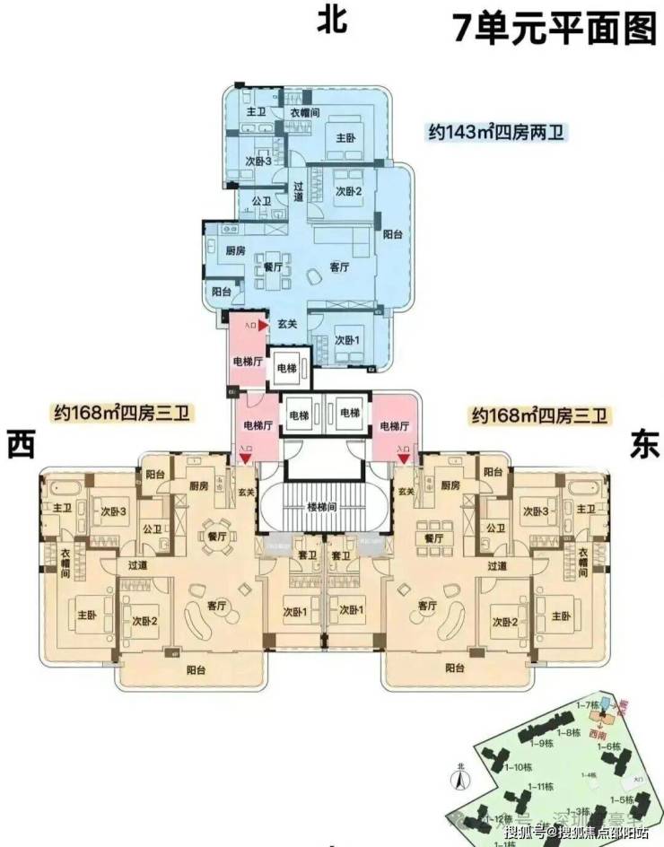 7栋,24层,3梯3户,约143/168平,可售69套。