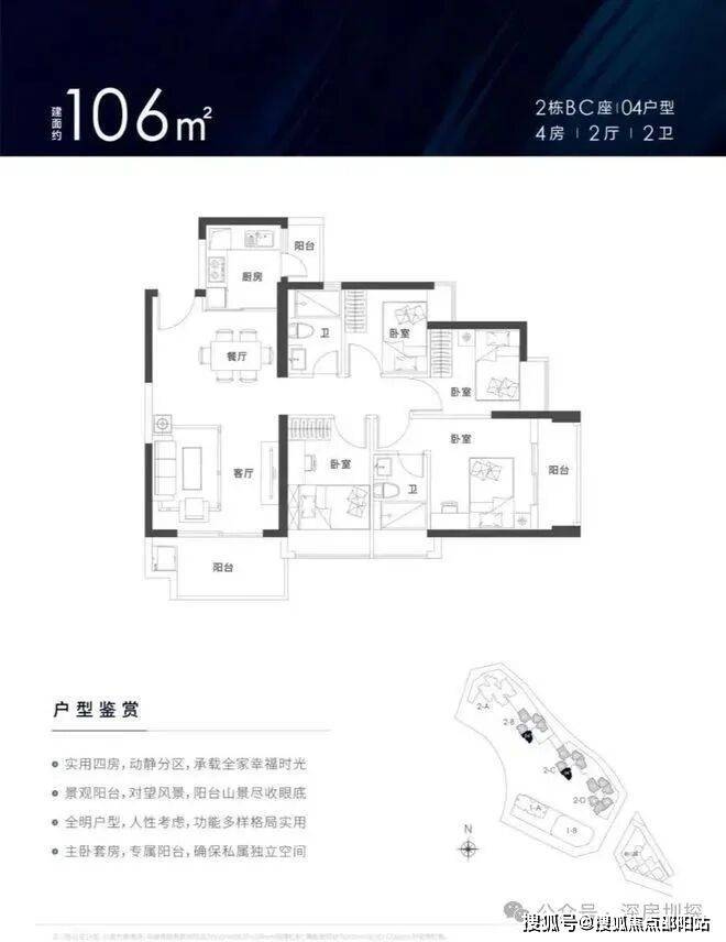 户型设计:主推79-129㎡三至四房,(实用率超90%),全明格局、双阳台设计,兼顾刚需与改善需求。