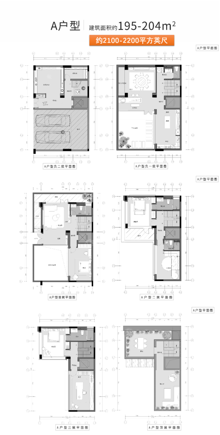 别墅:约175㎡-256㎡中式古典合院及195-220㎡现代别墅