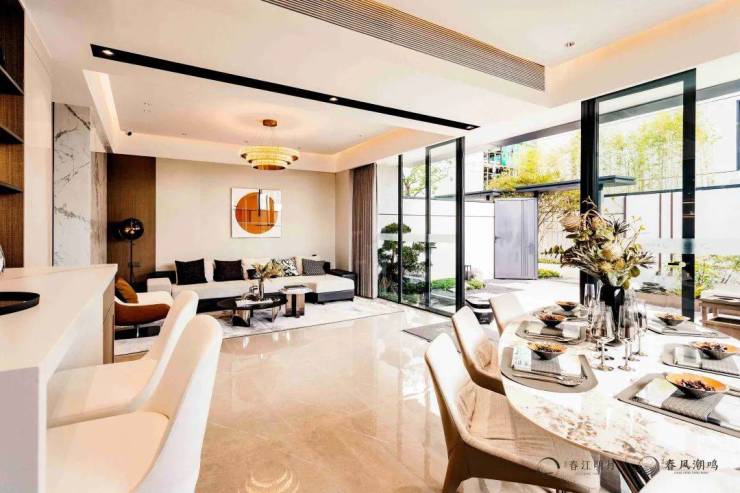7-8m大面宽的格局,每户的主要活动空间及起居室都朝南,最大限度的将阳光、鲜氧以及花园美景引入室内