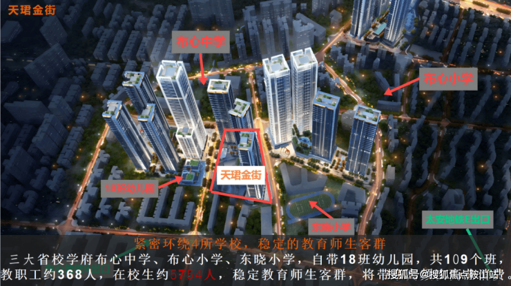 三大省校学府布心中学、布心小学、东晓小学,自带18班幼儿园,共109个班,教职工约368人,在校生约5754人,稳定教育师生客群,将带来高频次商业消费。
