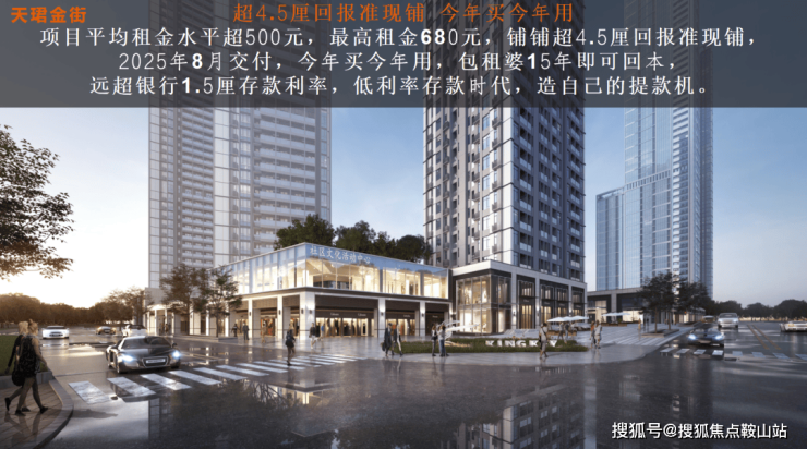 项目平均租金水平超500元,最高租金680元,铺铺超4.5厘回报准现铺,2025年8月交付,今年买今年用,15年即可回本,远超1.5厘存款利率,低利率存款时代,造自己的提款机。