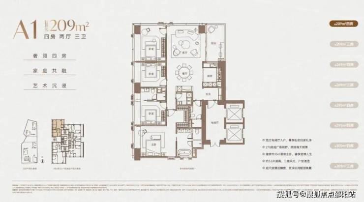 纯粹大宅,极致层高。项目首发产品涵盖建面约209㎡至1150㎡,起步即为大宅,部分户型尊享双梯入户,联动奢阔客餐厅、中西双厨与阔景阳台,辅以多套间布局,勾勒出从容优雅的生活图景。