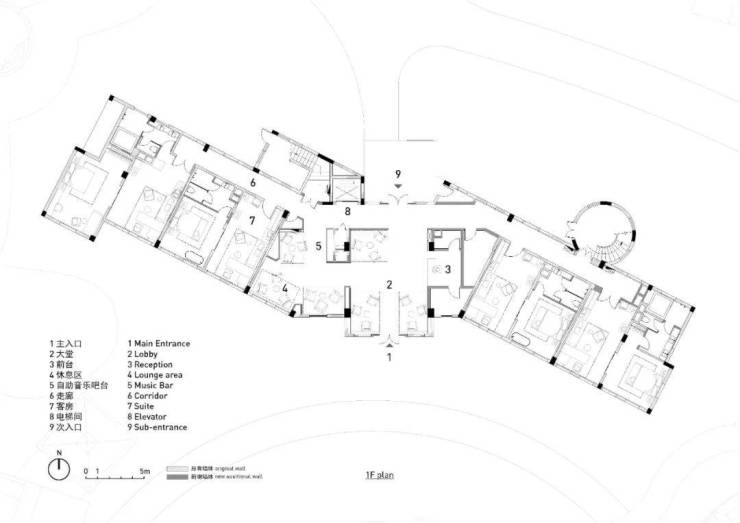 项目位于广州中旅阿那亚九龙湖社区中心小镇,YIN HOTELS所在建筑是由原有欧式小镇公主酒店的贵宾楼翻新改造而成。设计旨在让新的空间精神融入这座古典建筑的时空背景中,并创造流淌至今和可见未来的时间记忆及度假体验。