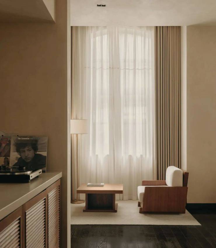 YIN HOTELS以全套房为特征,包括大床套房及家庭套房等不同房型。每间客房特别采用卧室延伸进客厅的开敞式移门布局,扩大内部视野并丰富入住的空间体验。正如阿那亚隐庐酒店全汤池客房的度假理念,YIN HOTELS将客房所有浴缸置于床及窗边,希望只有在度假时光可体验这一亲密无间。酒店的第三个特征则是全客房黑胶吧台配置,大堂的自助音乐吧台和客房内均提供黑胶唱片及播放设备,镌刻的时光和流淌的音符为一次次行旅驻留增添独特的记忆。
