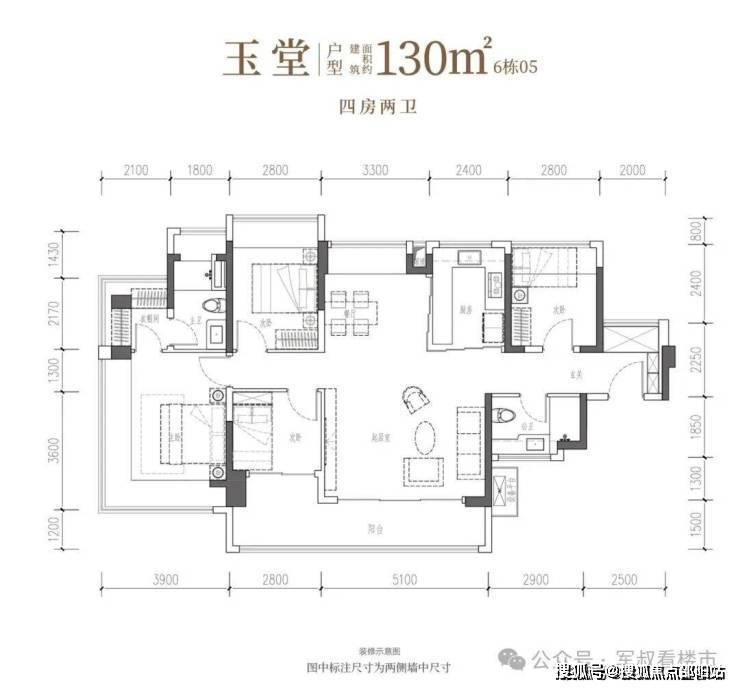 四开间IMAX光幕引景入室,以LDKB家庭聚场升温情感,更以双转角主卧套房,礼献一方休憩殿堂。• 玉堂·建面约130㎡4房2厅2卫:南向四开间,约14.7米IMAX光幕,尺度自成