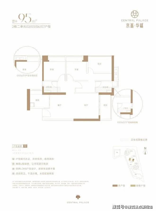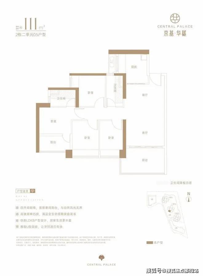 仅2栋2单元05户型才有,设计的是经典竖厅格局,LDKB一体化,动静分区,四开间朝南,U型厨房,卫生间干湿分离,得房率约73%(不含赠送),阳台西南朝向。京基·华樾 售楼处电话:☎400-892-2273