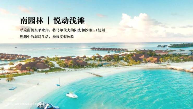 南园林主题——悦动浅滩,1:1复刻马尔代夫度假酒店的园林形象,打造享受、观赏、会客为主的观赏型园林