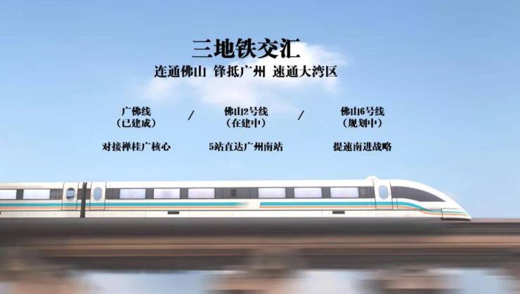 1、广佛线 —— 新城东站(约1.5km)已通车,约20分钟祖庙,约30分钟千灯湖,无缝对接广州地铁1/2/3/8号线