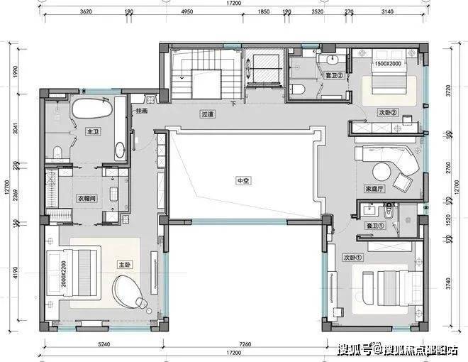 二层卧室布局错落有致,挑空区丰富空间层次;