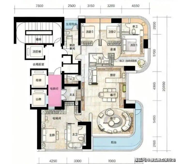 层高达到3.3-3.6米,L型阳台进深达2.8米,专梯入户,保障极致私密与尊贵感。