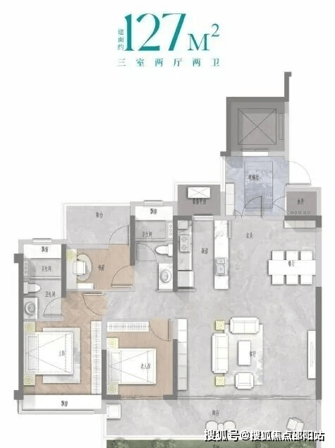 建面约127㎡舒适三房:空间布局合理,兼顾度假与生活