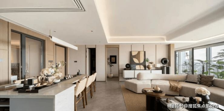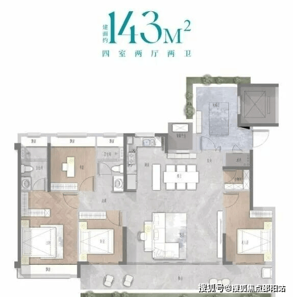 建面约143㎡平层奢宅:方厅+双厨设计,适合多人家庭欢聚