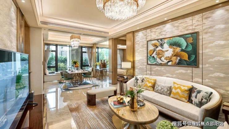 奢阔尺度:约50㎡礼宾级会客厅,故宫美学十字中轴九宫格布局,礼序井然。
