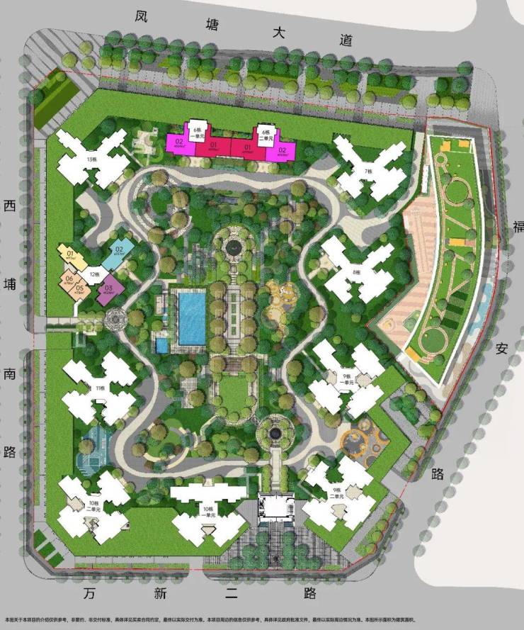 配备全龄子母双泳池、亲子乐园、交流花园,构建全龄活动功能配套,主出入口列阵式礼仪轴线,体现归家仪式感,品质尊崇感