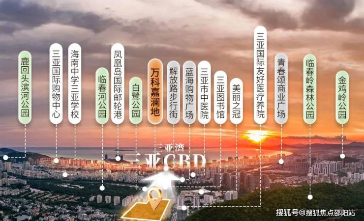 烟火浓度“15分钟”生活圈环揽蓝海购物广场、三亚湾壹号滨海购物广场、大悦城、海旅免税城、夏日百货5大城市级商业健康浓度直线距离约300M三亚中医院(三甲)人文浓度直线距离约250M三亚图书馆、约700M临春小学交通浓度新风东路、凤凰路、G98环岛高速纵横全城[信息来源:百度地图、三亚广播电视台公众号]
