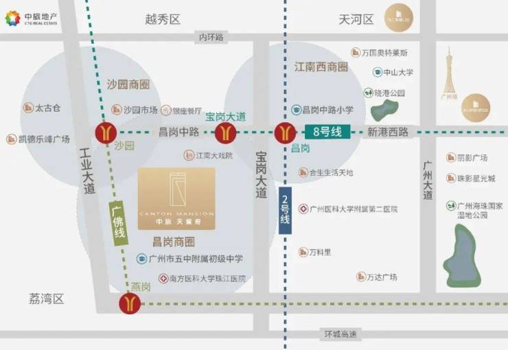 距地铁8号线宝岗大道C出口站约200米,5min上内环,交通便利,全城通达性高;步行500米即达省级名校昌岗中路小学,临近乐峰广场、太古仓、南方医科大学珠江医院等成熟生活配套。