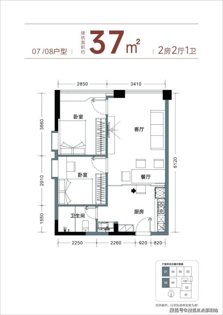 【产品面积】约37㎡小两房(实际套内使用面积接近54㎡)