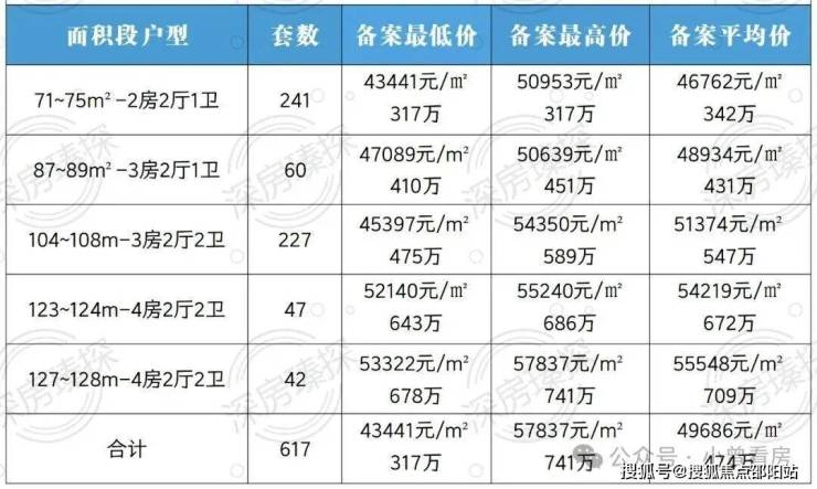 下面是澜汇云境全套的备案价格表,供大家参考。