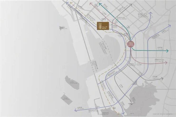 根据规划,周边将布局“10+5+2+1”的宝中高密交通网:8条干道和2条城际,5条地铁,2个国际机场,1个前海综合交通枢纽,瞬间实现深圳与大湾区、中国乃至世界的城市切换