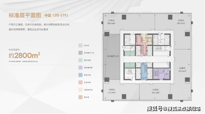 大堂层高:双大堂设计,1F11.4米/5F9.6米