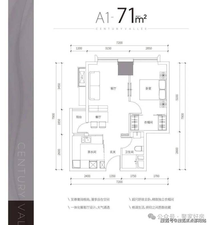 面积为67-71㎡1房卫,83-87㎡2房1卫,位于29-42F,5梯14户。