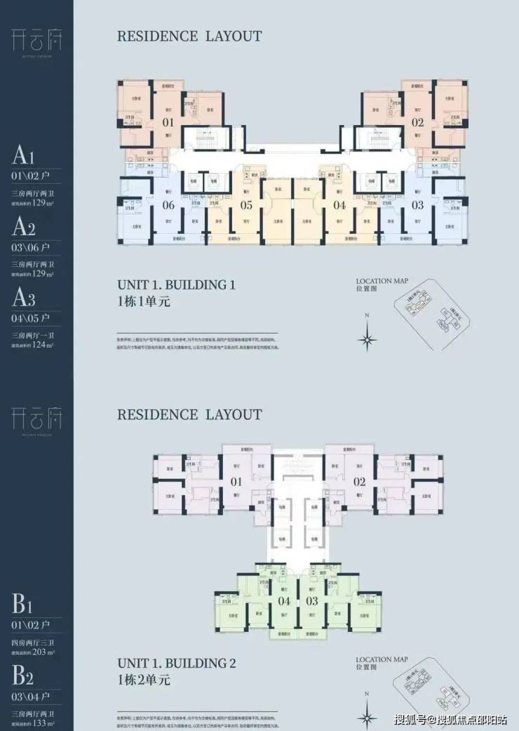 🔘1栋一单元A1、A2户型:面积约为129㎡