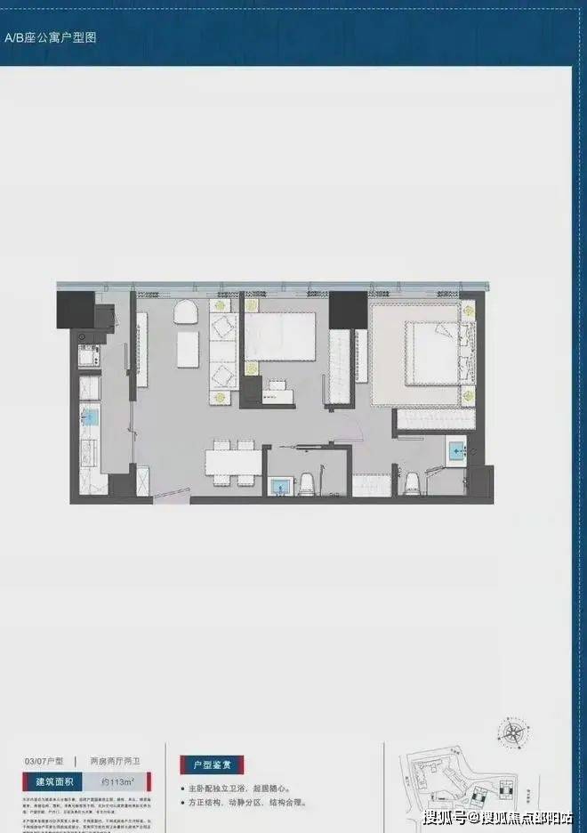 公寓113平户型两房两卫:
