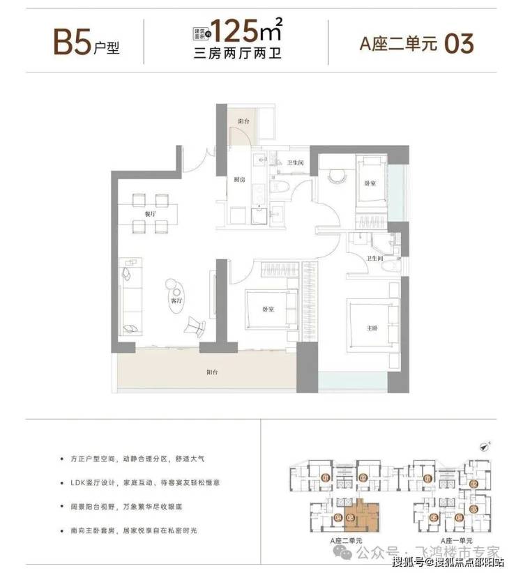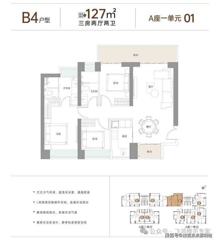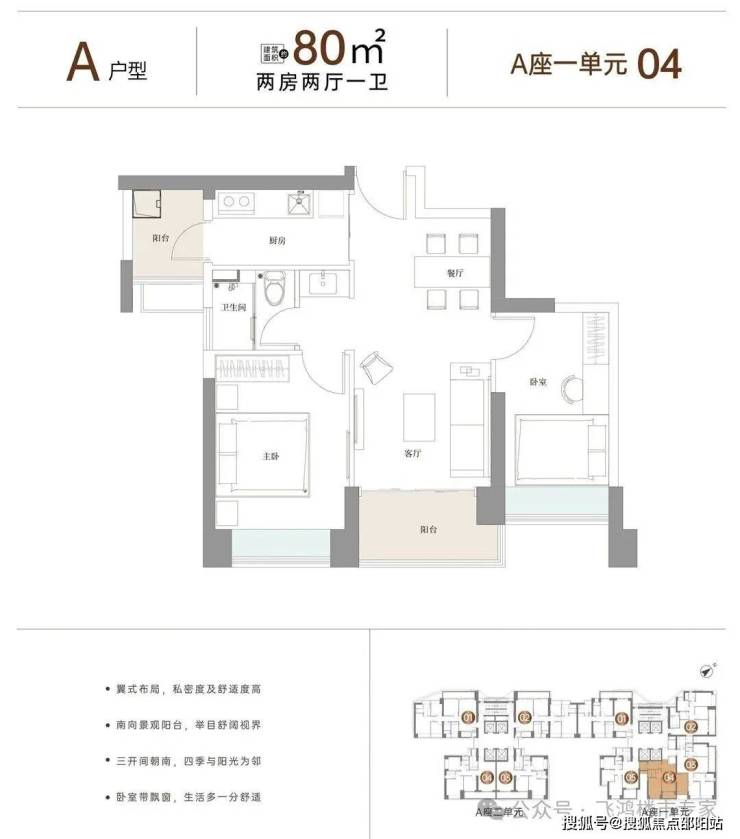 1栋A座一单元四梯五户约80-127㎡2-3房,户型方正·双阳台;