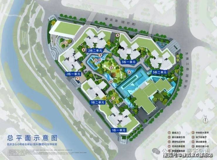 中央景观泳池、奇幻下沉庭院、浪漫星光飞瀑、活力阳光草阶、韵动星光跑道、智趣童享乐园…