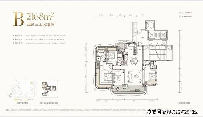 约188㎡(四房三卫双套间):宝中“六边形战士”。集核心地段、顶尖配套、实用空间、优质景观、央企品牌于一身,几乎没有短板,预计将成为竞争最激烈的户型。