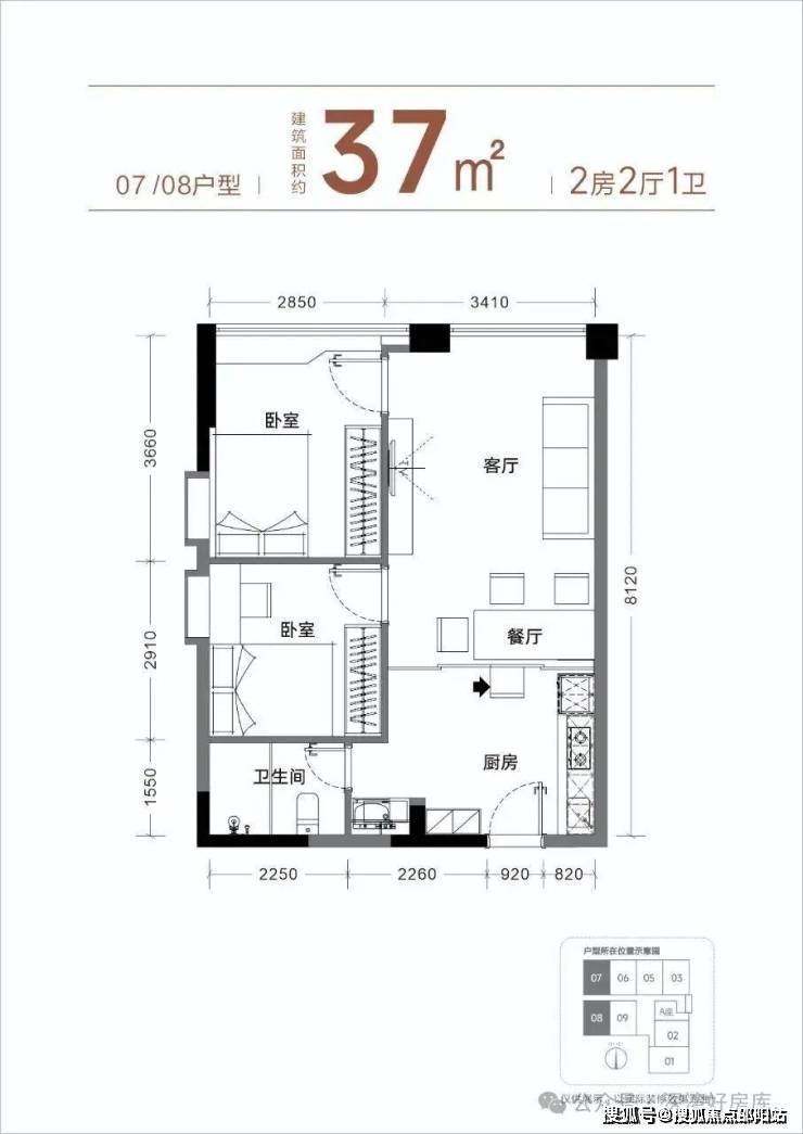 【产品面积】约37㎡小两房(实际套内使用面积接近54㎡)