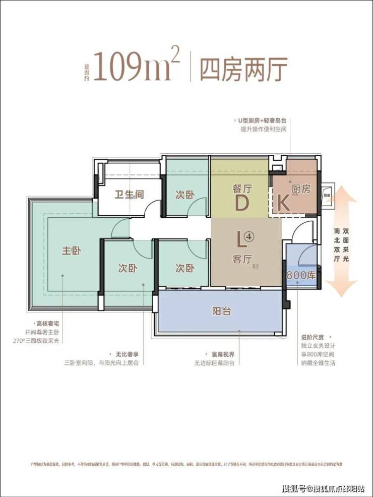 约109㎡四房,入户赠送800库收纳空间,预留了上下水道,可打造成家政间,三间卧室朝南,适合年轻家庭/二胎家庭。