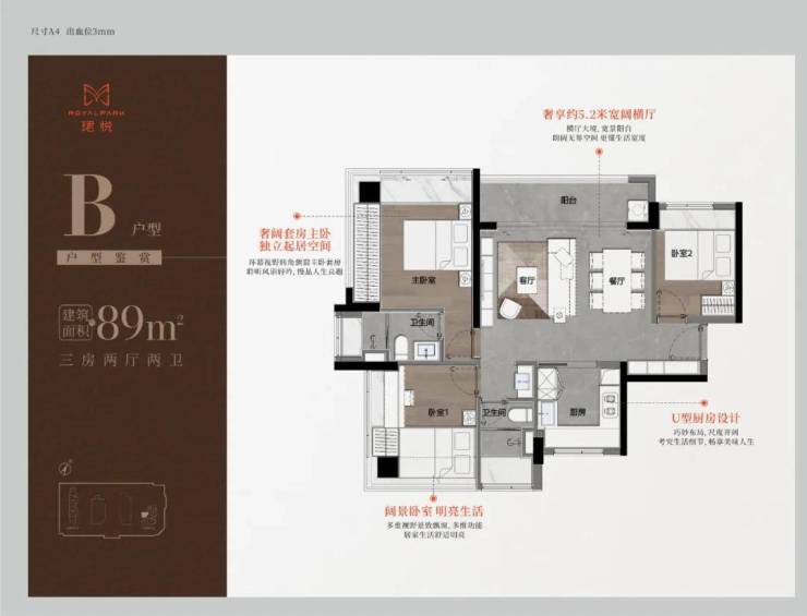 户型方面,比较简单就89㎡三房和115㎡四房,新规后设计,主要通过凸窗赠送,还加上了阳台改房。赠送前使用率在77%,赠送后去到85-95%左右。