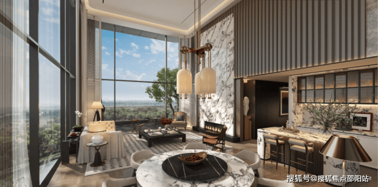 约6.2米挑高墅厅与超45米环幕瞰景面的结合,将别墅的仪式感提升至云端,同时保留了大平层的空间质感。