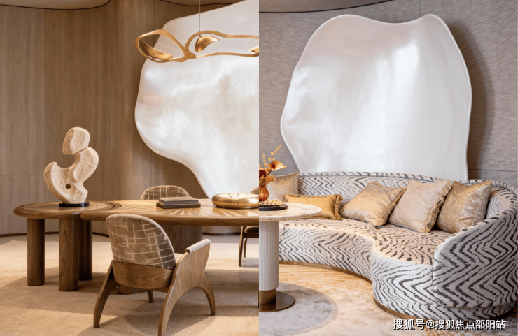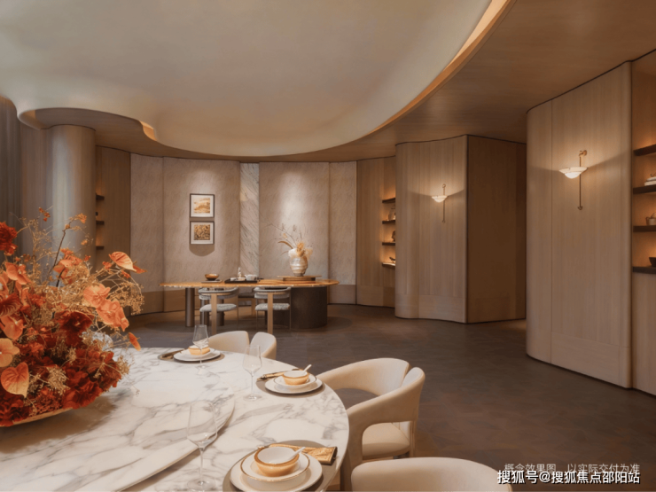 加上弧面设计,从墅厅到餐厨的转换,实现了视觉与体感的无缝衔接。