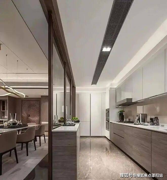 Ø七层钢琴烤漆与柜面的天然木纹完美融合的钢琴最高标准饰面定制橱柜,均由德国顶级厨房家具品牌warendorf度身打造;