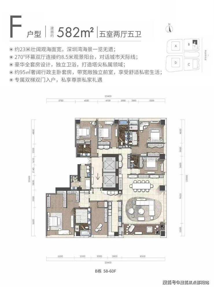 160㎡2房售罄,223㎡3房,343㎡4+1房,580㎡5房6卫